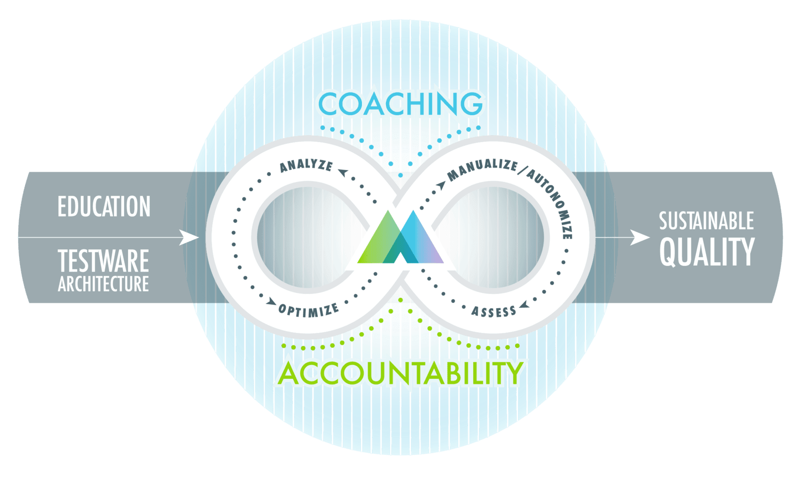 Scale - with a solid foundation build out across your application environment or deep within an application. Reaching sustainable quality is about building the repetitions of test runs and evaluation of results.